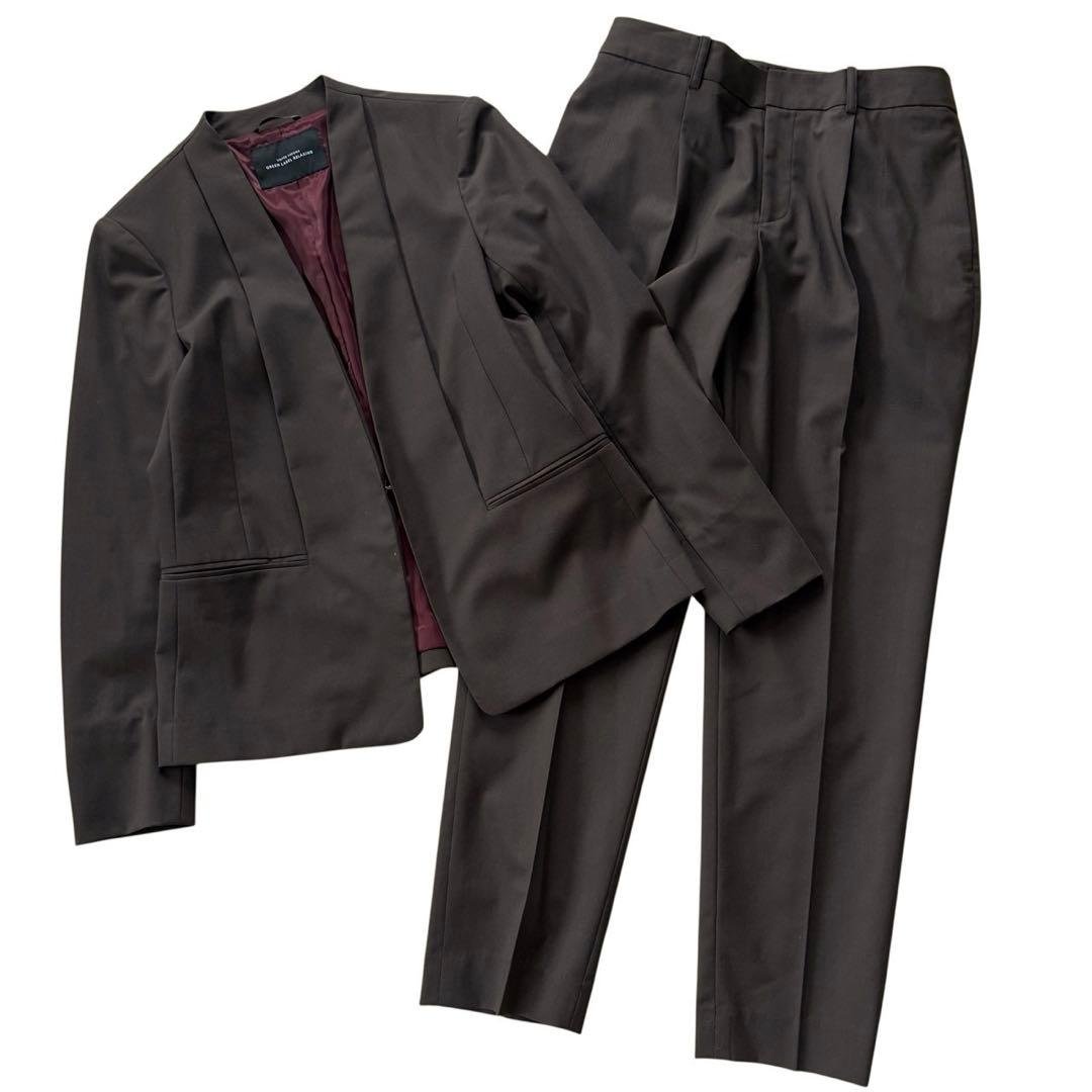 綺麗な状態です^ ^洗濯機で洗える素材です。サイズは画像最後をご確認ください。⭐︎商品説明Design上下同素材のセットアップをペプラムデザインでアップデート。トップス:イレギュラーになったペプラムが華やかで、気になるウエスト周りをさり気なくカバーするデザイン。袖口返し可能なスリットあき。肩、腕周りはコンパクトな作りですっきりと見せる。パンツ:センタープレス入りで、脚のラインが長く見える。ヒールでもフラットシューズでも合わせやすい着丈。後ろの股繰りを深くすることでヒップラインをすっきりと見せる。後ゴムギャザーではき心地が良い。Materialしっかりとしたポリレーヨンの二重織。ほどよい厚さとストレッチ感のある素材。Stylingセットでもそれぞれ単品使いもできるアイテム。きちんとしたシーンではセットで、オフはペプラムデザインのトップスをカジュアルなボトムスとあわせるのもおすすめ。| カテゴリー: | ファッション>>>ビジネススーツ>>>パンツスーツ上下 |